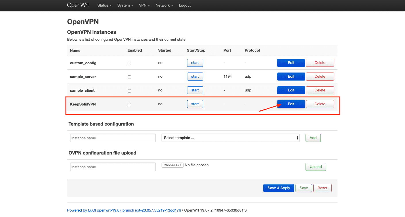 14. Включите параметр Enabled для KeepSolidVPN и нажмите Save & Apply.