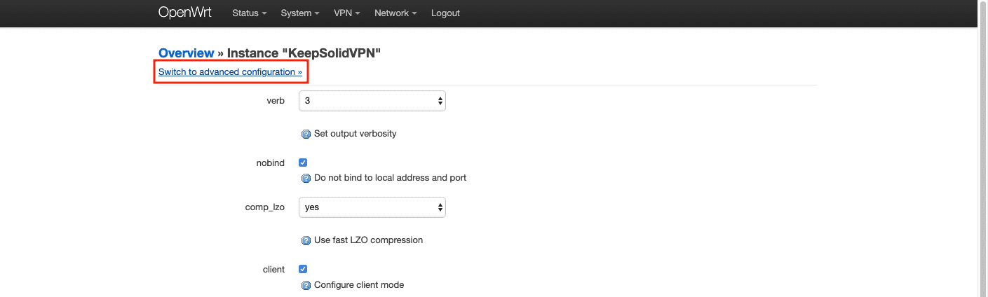 III. Настройте OpenVPN соединение на вашем OpenWrt роутере