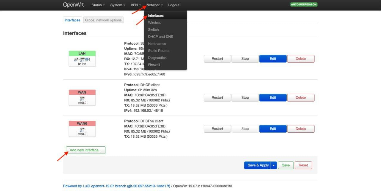 1. Перейдите на вкладку Network > Interfaces и нажмите Add new interface…