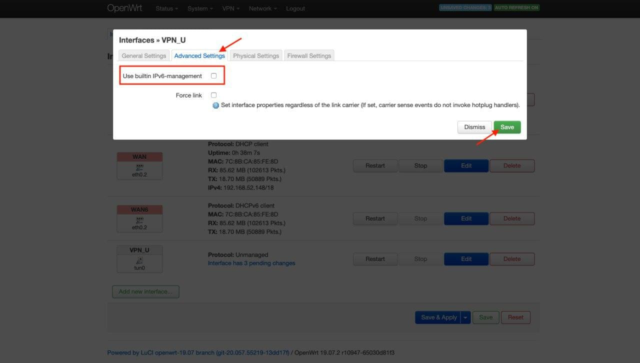 4. Перейдите на вкладку Advanced Settings и отключите параметр Use built-in IPv6-management.