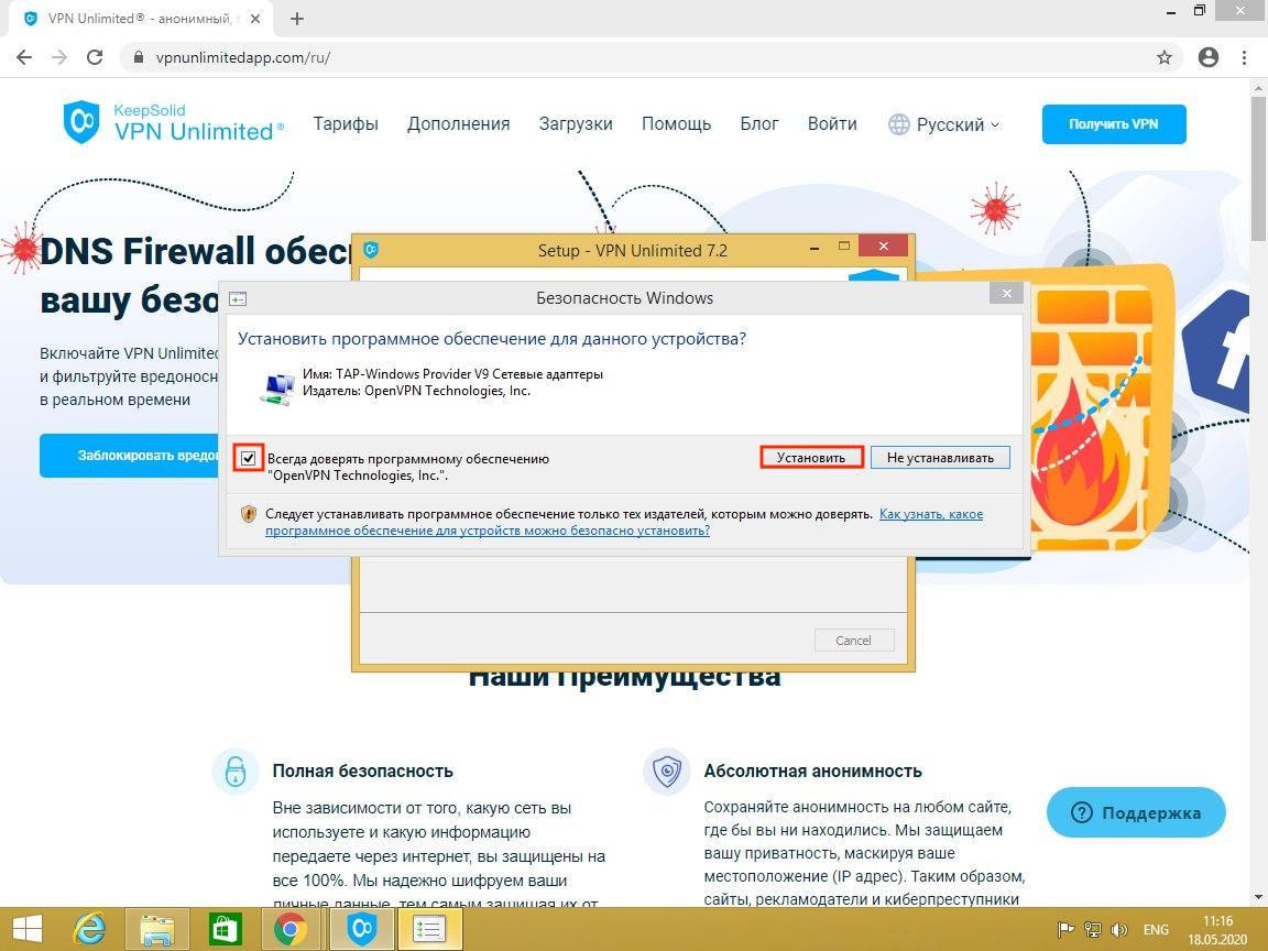 Чтобы начать процесс установки VPN для Windows 8/8.1, нажмите Install.